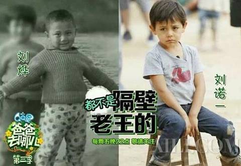 《爸爸去哪儿》第三季的星爸们曝光童年照片,网友将照片与各家萌娃们的照片对比,萌娃们完全继承了爸爸们的标志性特点。诺一忧郁的小眼神和爸爸刘烨一模一样。当被称为“坑娃小公举”的刘烨身穿一千多块的新秀丽双肩包,手推价值2750块的法国品牌The RA