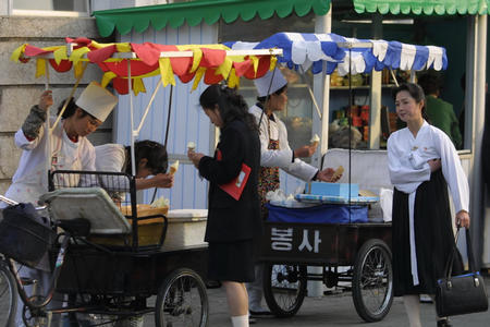 朝鲜的“街头经济”(资料图)大公网7月21日讯 据韩国朝鲜日报报道,据悉,最近朝鲜中小企业活动和个人创业日益活跃。基于新加坡的对朝民间团体“Chosun Exchange”董事长Andrei近日接受节目采访时表示:“朝鲜中小企业在出现新趋势并逐